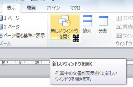 例えば、表示タブの「新しいウィンドウを開く」をクリックします。