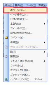 メニューの挿入>改ページから、「改ページ」ダイアログボックスを開きます。