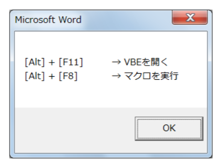 "[Alt] + [F8]" & vbTab & "→ マクロを実行"