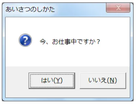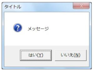 上記の通り、[はい(Y)]と[いいえ(N)]を選択することにしていますので、その選択結果によって実行内容を変更する仕掛けです。