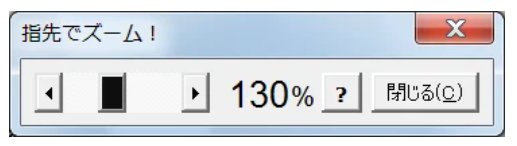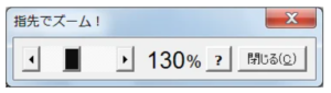 キーボードから操作する場合には、50段階ですが、マウスで、操作ダイアログボックスのスクロールバーのつまみと両端のボタンの間をクリックすれば1パーセント単位で倍率を変化させることができます。