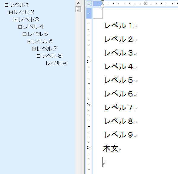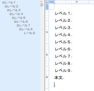 見出しマップに表示されるアウトラインレベルは1~9あります。