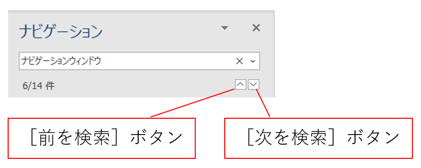 [ナビゲーション]ウィンドウには、[前を検索]ボタンと[次を検索]ボタンが用意されているので、文書内での対象箇所の行き来が簡単です。このような配慮はうれしいですね。