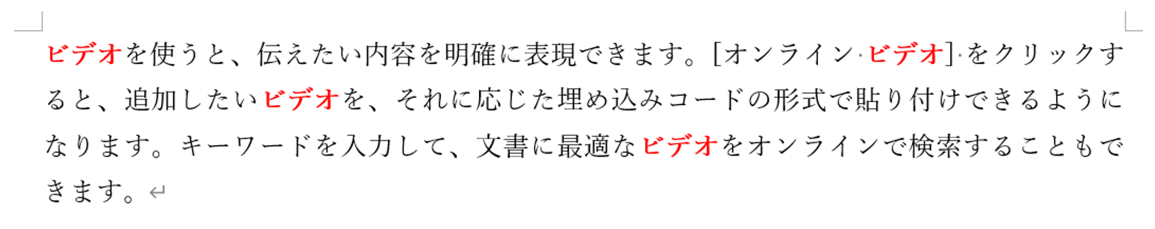 特定の語句の文字書式を、以下のように「赤文字+太字」に設定してみます。