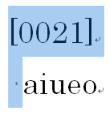 [0021](タブ)aiueo(□は全角スペース、_ は半角スペースとご理解下さい。)