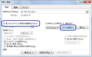 (2)「見つかったすべての項目を強調表示する」にチェックをいれて、検索をします。