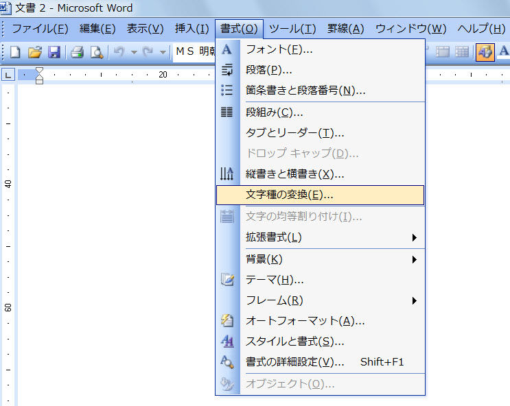 こうすれば、マウスを使わずに、メニューを開いて「文字種の変換」ダイアログにたどり着くことができます。