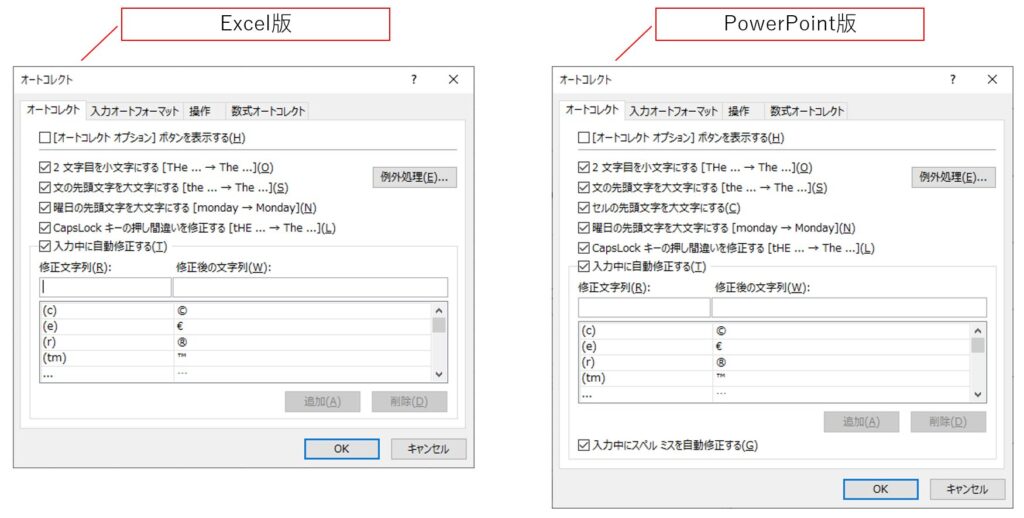 なお、ExcelやPowerPointでも、同じキーボード操作でオートコレクトのダイアログボックスを開けます。