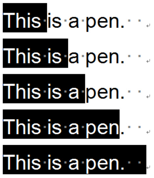 簡単な話なのですが、英語でも日本語でも文中にカーソルを置いて、以下のようにカーソルを移動させてください。