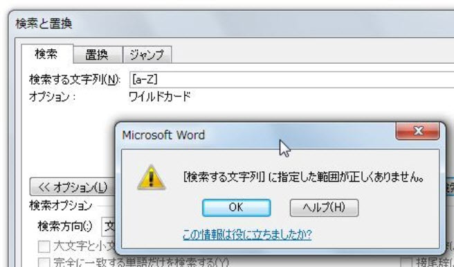 そんなわけで、半角のアルファベットを探す場合には、大文字、小文字でそれぞれ範囲をしていしてくっつけます。