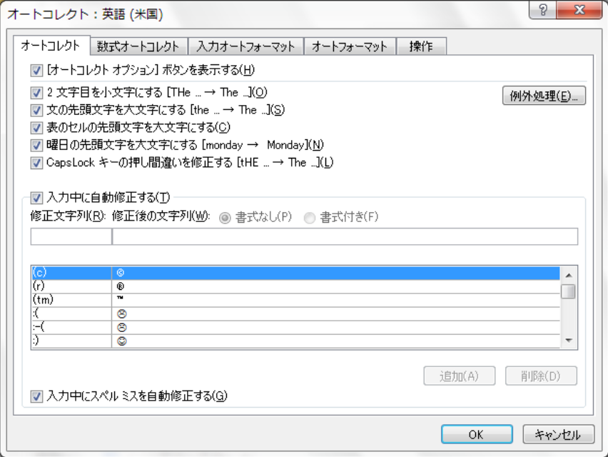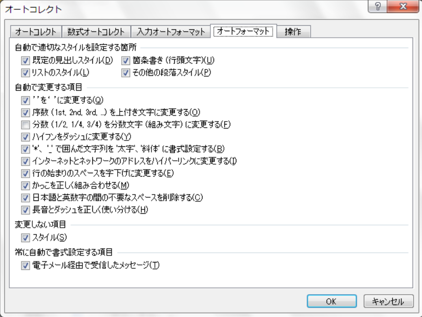HOME > Word > 【Word】オートコレクトのデフォルト設定 2012年11月7日 2025年1月5日 オートコレクト, 文字入力 私はオートコレクトの設定はすべてオフにしています。 会社のパソコンの場合、デフォルト設定に戻さないといけないため、個々の設定を変更することに躊躇されている方がいらっしゃるかもしれません。 設定のダイアログは、以下のショートカットで表示されます。 [Alt] -> [T] -> [A] 以下、Word 2010のデフォルトの設定をご紹介します。 <目次> オートコレクト数式オートコレクト入力オートフォーマットオートフォーマット操作 オートコレクト 数式オートコレクト 入力オートフォーマット オートフォーマット 操作 セミナー報告 【セミナー報告】第4回 MTPE もやもや会アフタートークまとめ 先日の第4回もやもや会の続き記事です。 もやもや会の後で、当日の発表者3名(燃脇さん、山本さんと私新田)がオンラインで話し合う機会を持ちました。いただいたアンケート結果を見ながら意見交換をし、お互いに ... Post Share Pocket Hatena LINE URLコピー -Word -オートコレクト, 文字入力