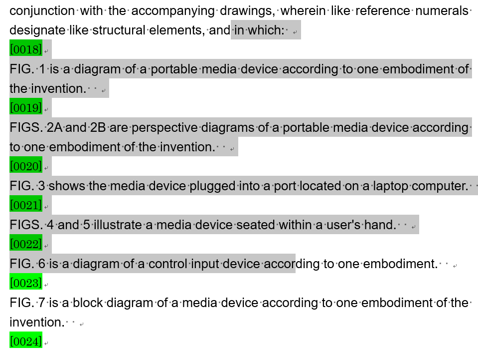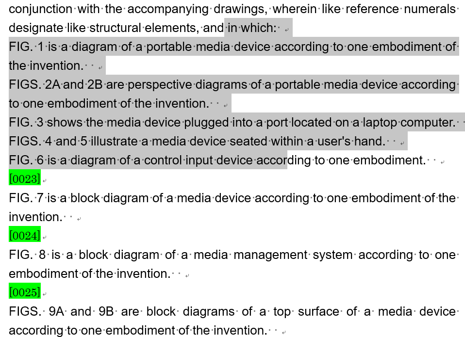 このときに、図面の説明部分で各段落に段落番号が挿入されますので、それを手で一つ一つ削除しているとのことでした。