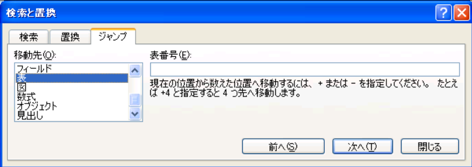 そうなんです、ここで「表」を選択して、番号を入力すれば、○番目の表にカーソルをジャンプさせることができるんですよね。