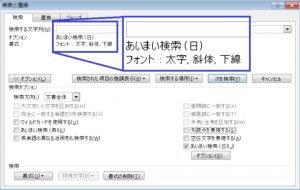 設定されたかどうかの確認は、検索する文字列の文字入力欄の下を見ればわかります。