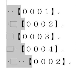 しかし、隅付き括弧の直前に半角スペースと全角スペース以外の文字列が入った場合には異なる結果になります。以下の例をご覧ください。