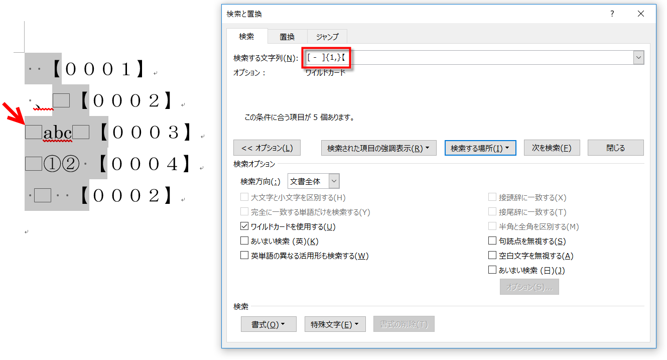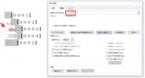 [検索と置換]ダイアログボックスを使って、該当箇所を選択しました。