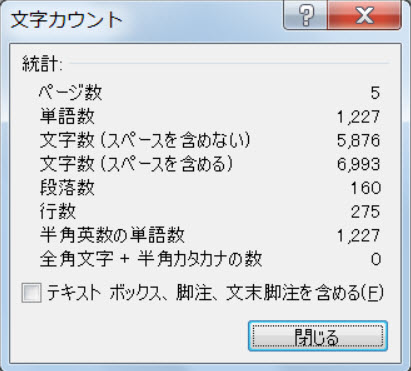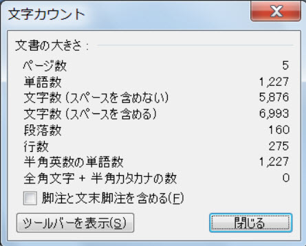 日・英翻訳をしていますので、「半角英数の単語数」を確認します。