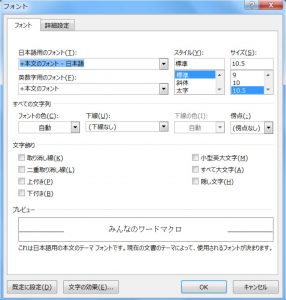 以下のように、フォントサイズは10.5ポイントで、MS明朝ですね。