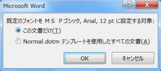 今後、新規で作成する文書すべてにこのフォントを適用する場合には、[Normal.dotmテンプレートを使用したすべての文書]をオンにします。