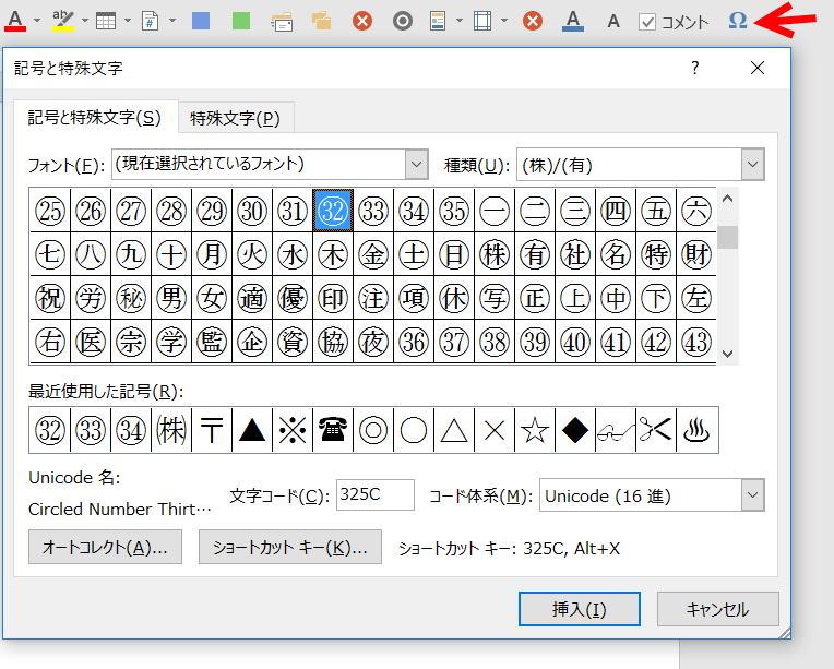 記号を挿入したり、文字の種類を確認したりするときに欠かせない[記号と特殊文字]のダイアログボックスを起動するあのボタンも追加できます。