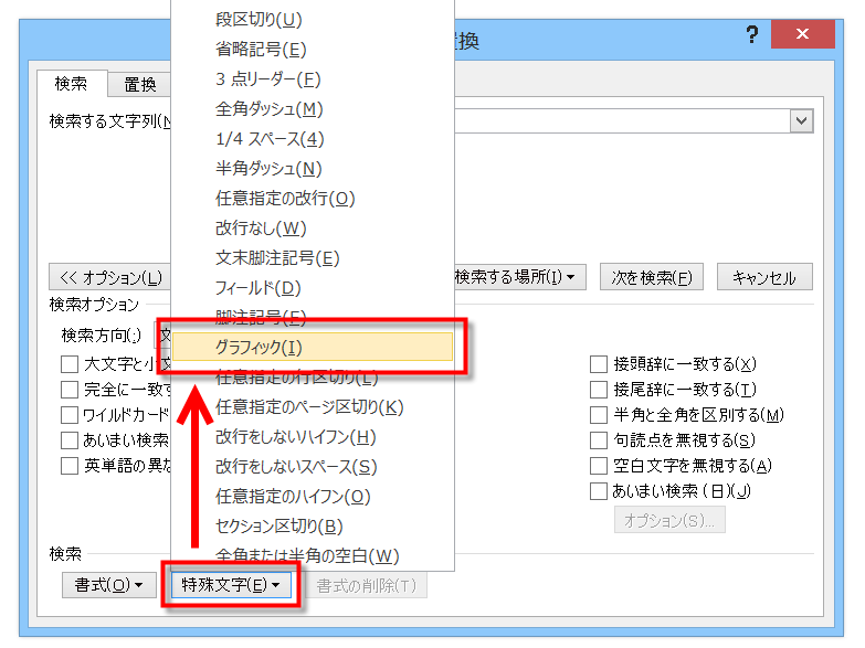 そして、[特殊文字]をクリックして[グラフィック]を選択します。