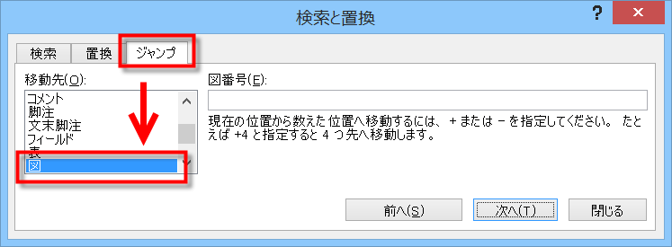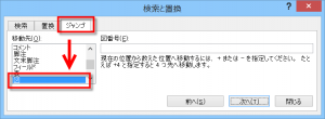 [検索と置換]ダイアログボックスの[ジャンプ]タブを使います。
