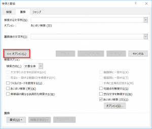 1.[検索と置換]ダイアログボックスのオプションを開く