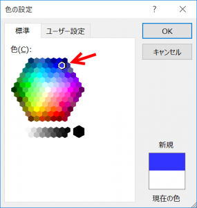 表示されたダイアログで、以下のますをクリックします。ここがWord 2003までで使われていた「青色」です。