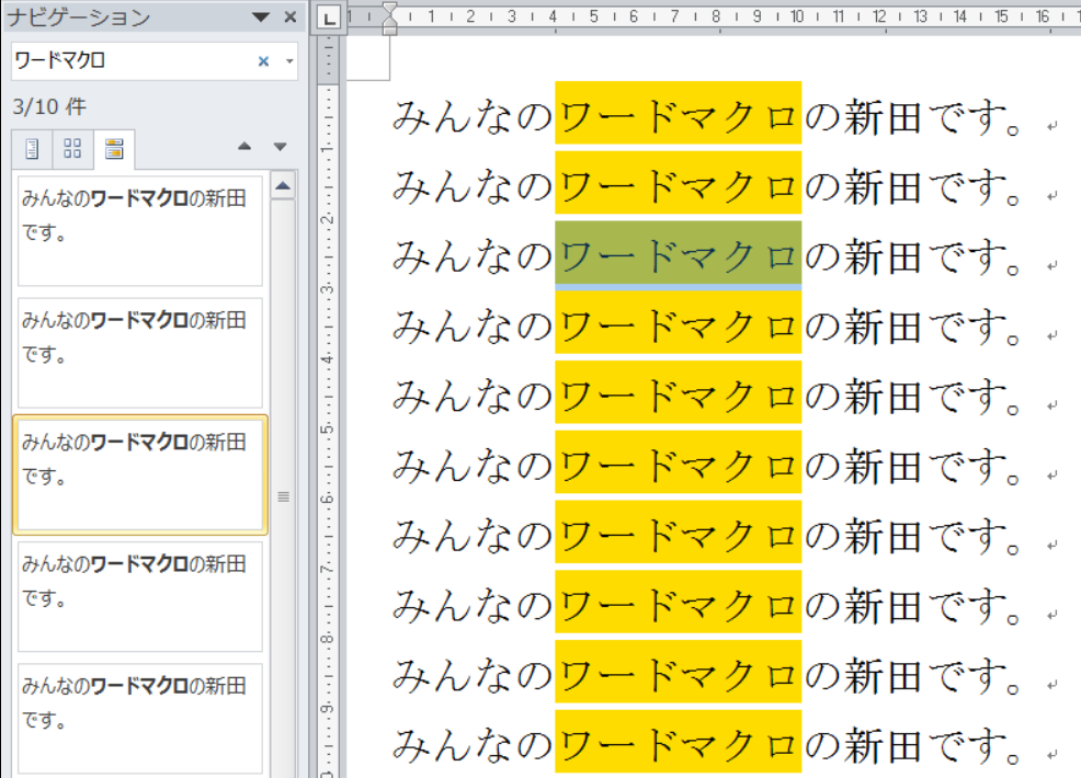 昨日紹介した「『検索された項目の強調表示』機能 Word2007 」はWord2010で別の形で進化を遂げましたね。