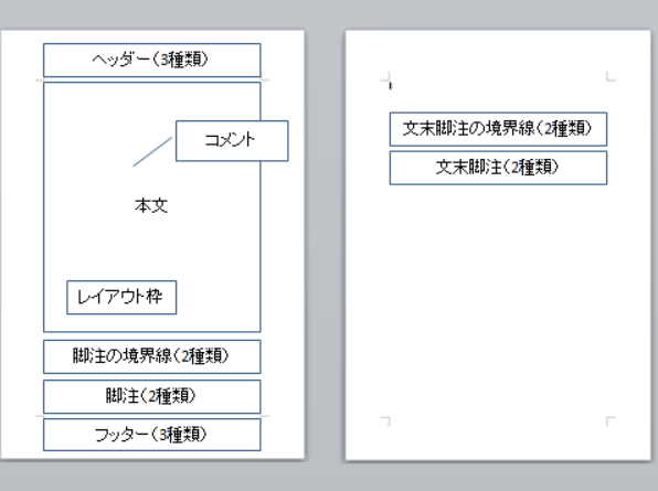 開発段階として、まず、1~5があって、6~11としてヘッダーやフッターが追加されて、その後12~17の脚注と文末脚注が追加されたのかなと勝手に思っています。