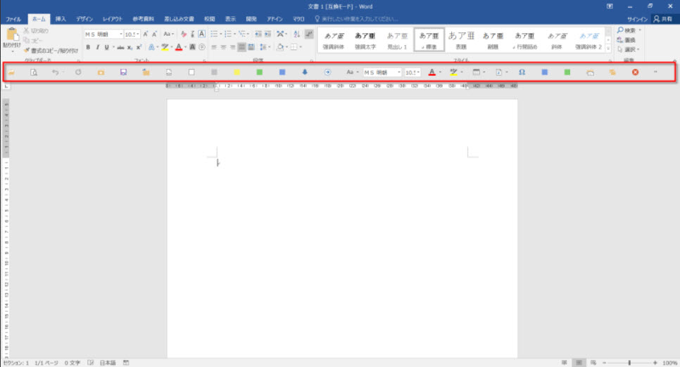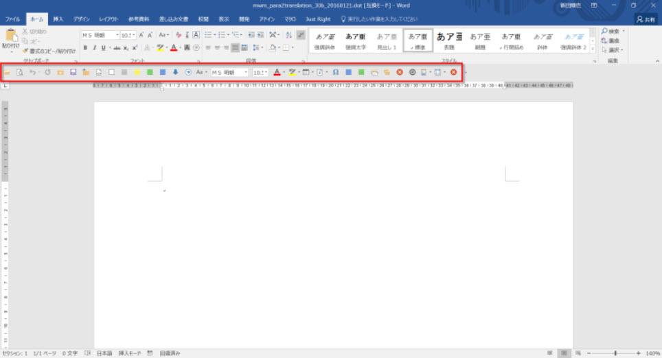 Word 2016 を起動して、いつものマクロ実行用のボタンをクリックしようと思ったら、見つからない。おかしいなーと思ったら、ボタンの幅が元に戻り修正されました。