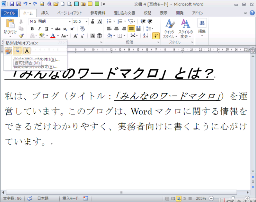 Wordの「貼り付け」機能のカスタマイズ(マクロの応用技) 上記の機能をマクロで応用