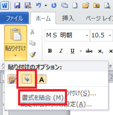 そのようなときにWordは、「貼り付け先の書式に合わせる(または、書式を結合)」という貼付け方法を用意してくれています。