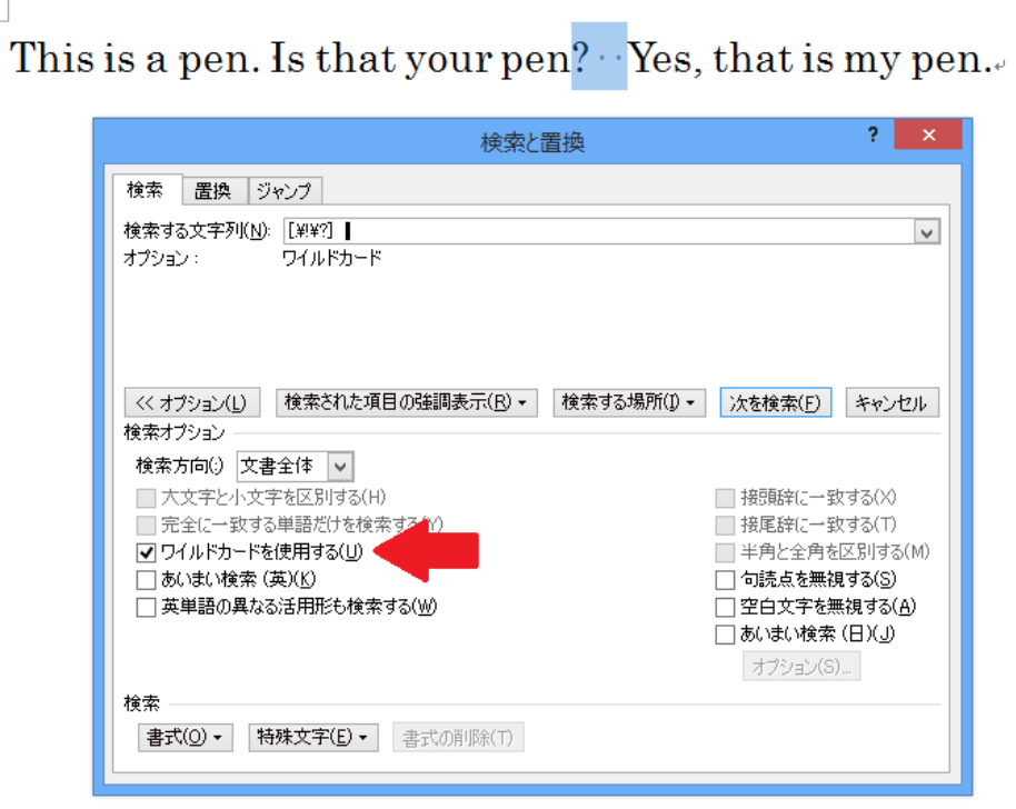 その時のWordの使い方です。ワイルドカード を使った方法をご紹介します。