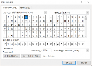 記号の挿入の時は、[記号と特殊文字]ダイアログボックスを使います。