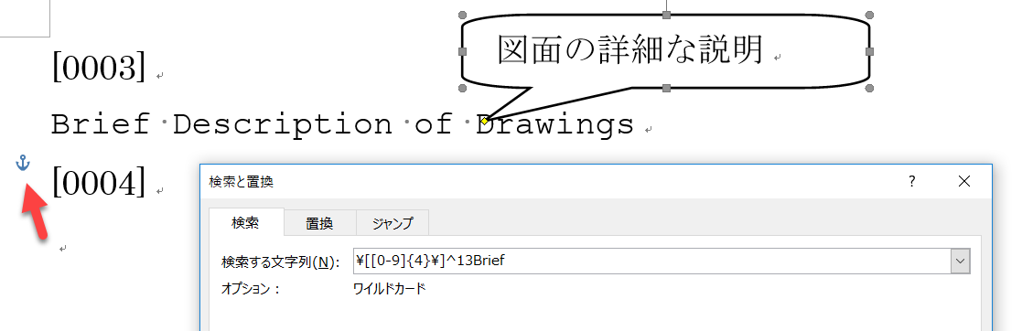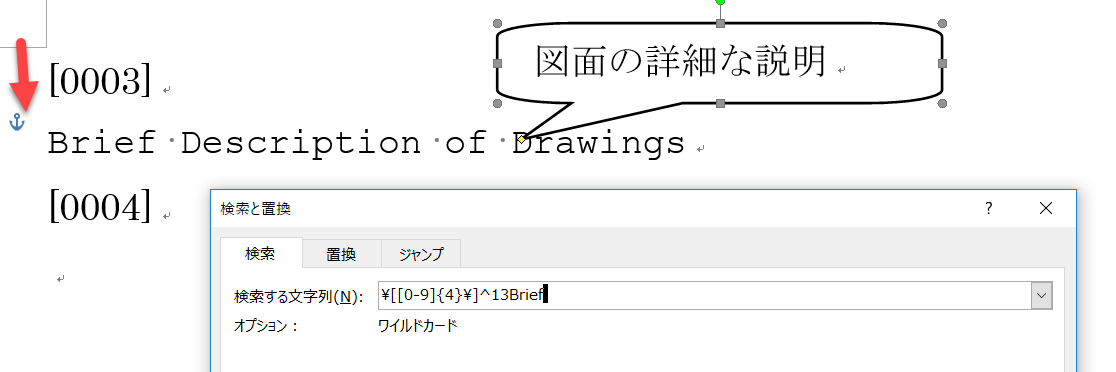 この検索がワイルドカードを使わなければいけないのか検討します。「【Word】ワイルドカードを使う場合の注意点(その2)」の「コメント」の場合と同じです。